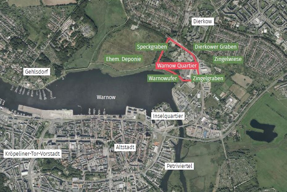 Mit der Entwicklung des zukünftigen Warnowquartiers als ein Projekt des Rostocker Ovals beschreitet Rostock einen großen Meilenstein in der Entwicklung der Hanse- und Universitätsstadt. Das Gebiet liegt zentrumsnah im Rostocker Stadtgebiet direkt am Ufer der Unterwarnow. Mit der Umsetzung des Modellvorhabens möchte Rostock eine integrierte und ganzheitliche Stadtentwicklung vorantreiben, die die Qualität des Lebens und Arbeitens in einer sich verdichtenden Stadt sichert. Das zukünftige WarnowQuartier bietet Platz für ca. 2.000 Einwohner und ca. 1.000 Arbeitsplätze.