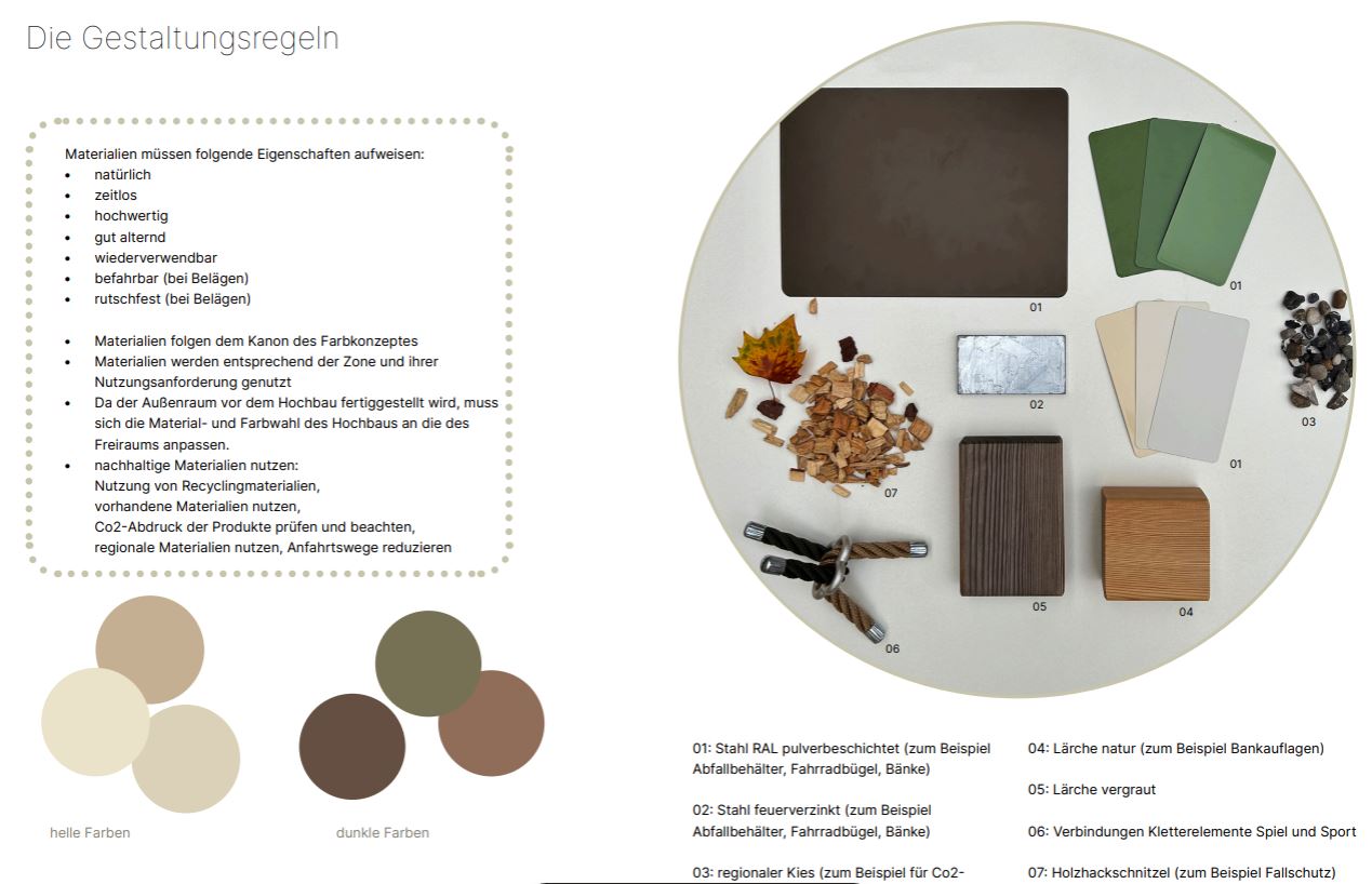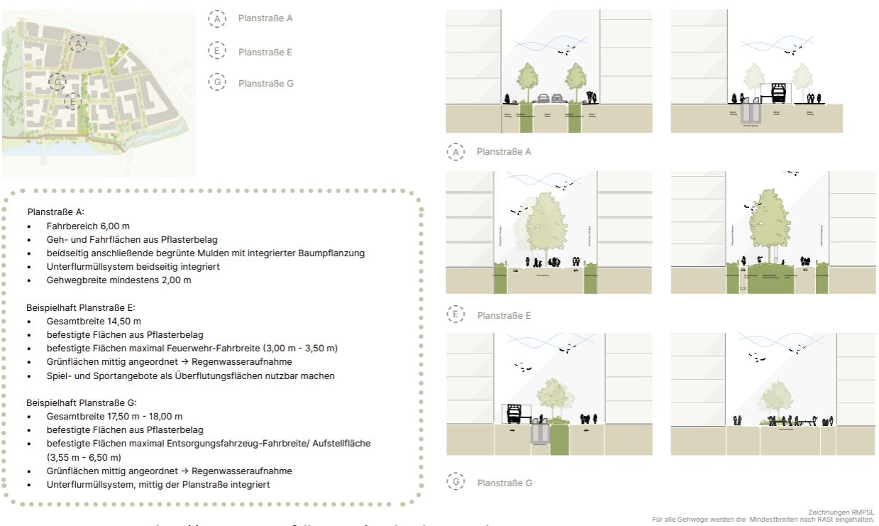 Der „Leitfaden öffentlicher Raum“ bildet die gestalterische und funktionale Grundlage für die Planung und Umsetzung aller öffentlichen Flächen im Quartier – von Straßen und Plätzen bis hin zu Grünanlagen und Spielbereichen.